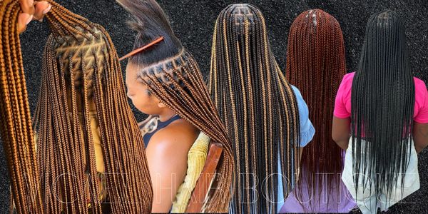 Box braids are a popular protective hairstyle, particularly within African communities. They are characterized by their square-shaped partings ("boxy" divisions) and are designed to be worn for extended periods to promote natural hair growth and protect the ends. They are typically installed using synthetic hair, which adds both length and thickness to the natural hair that is braided inside.